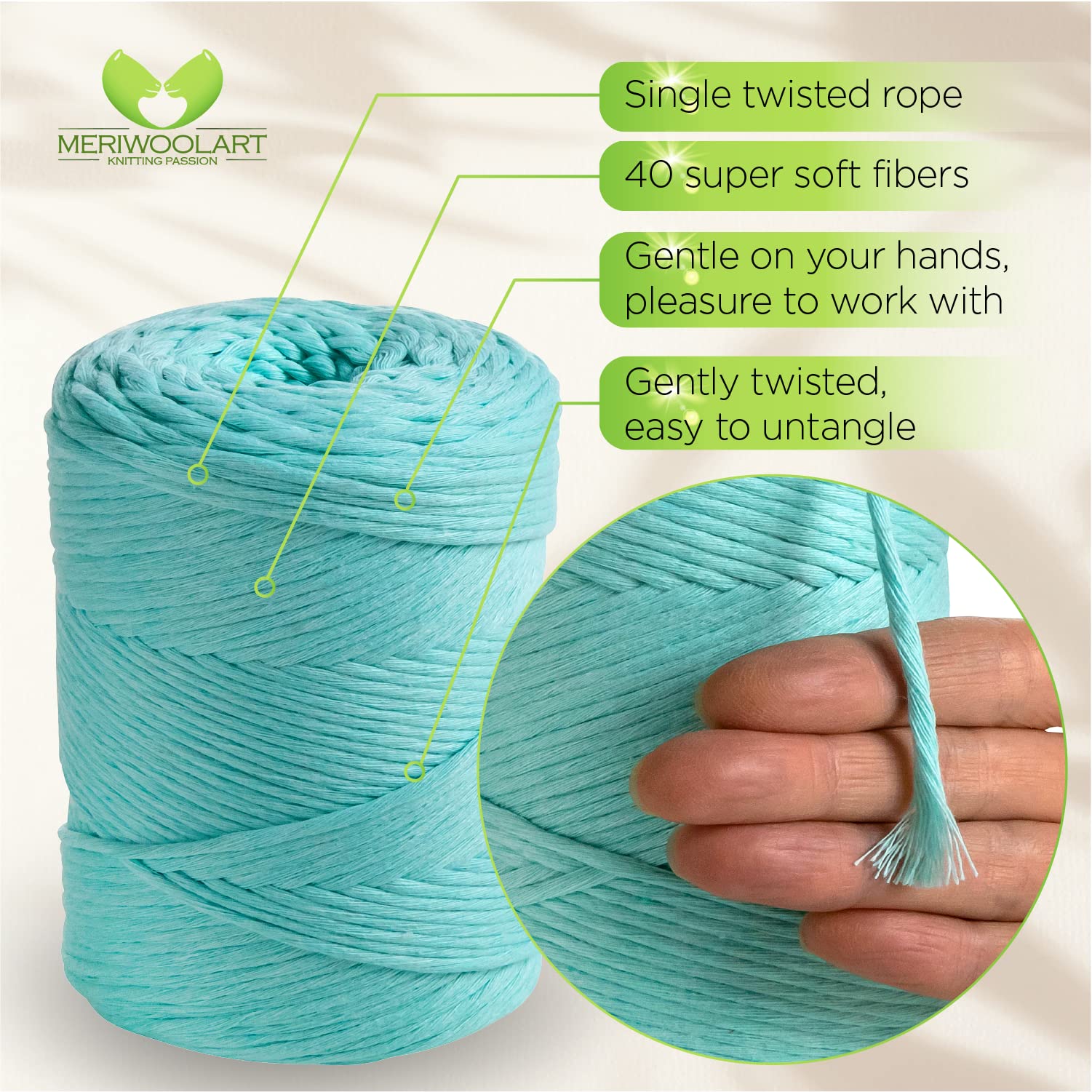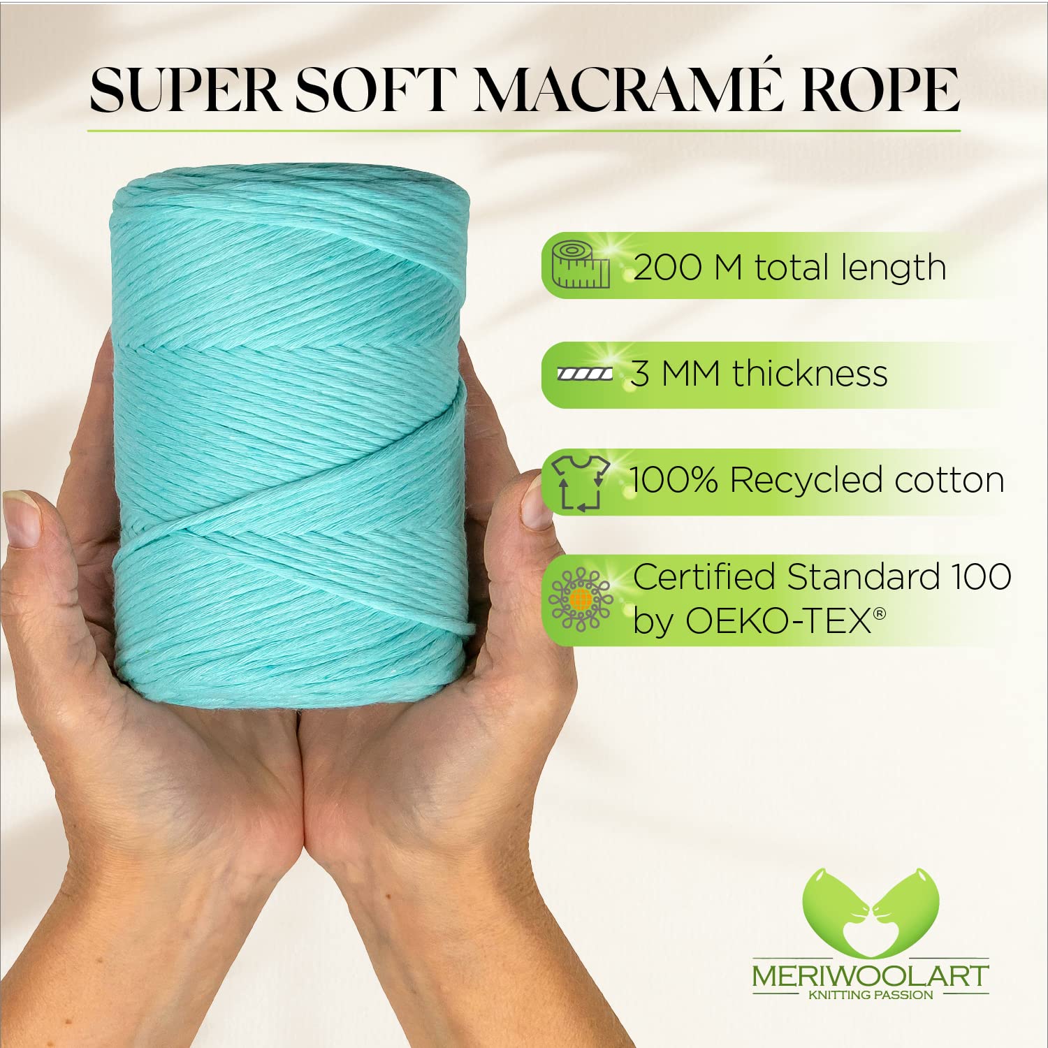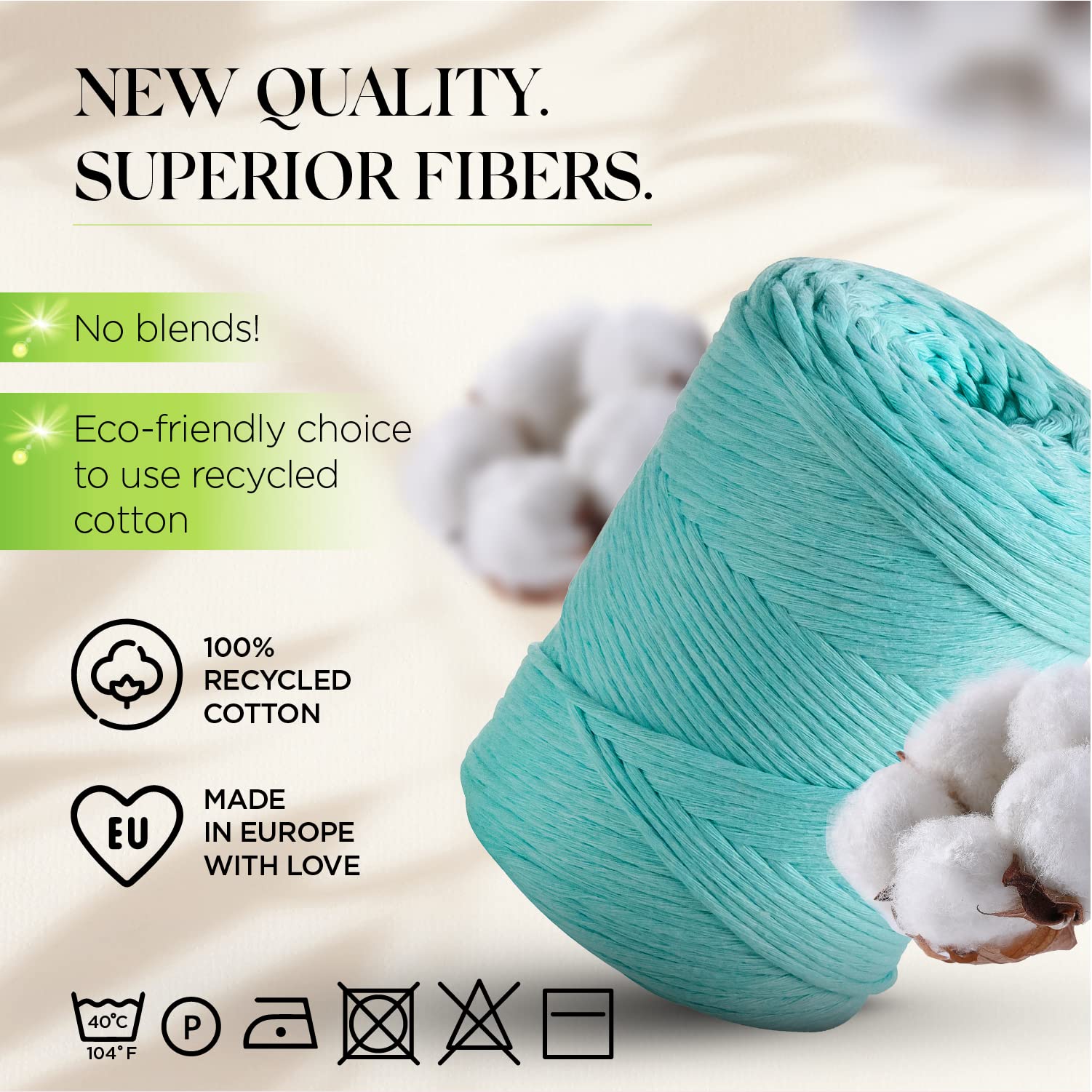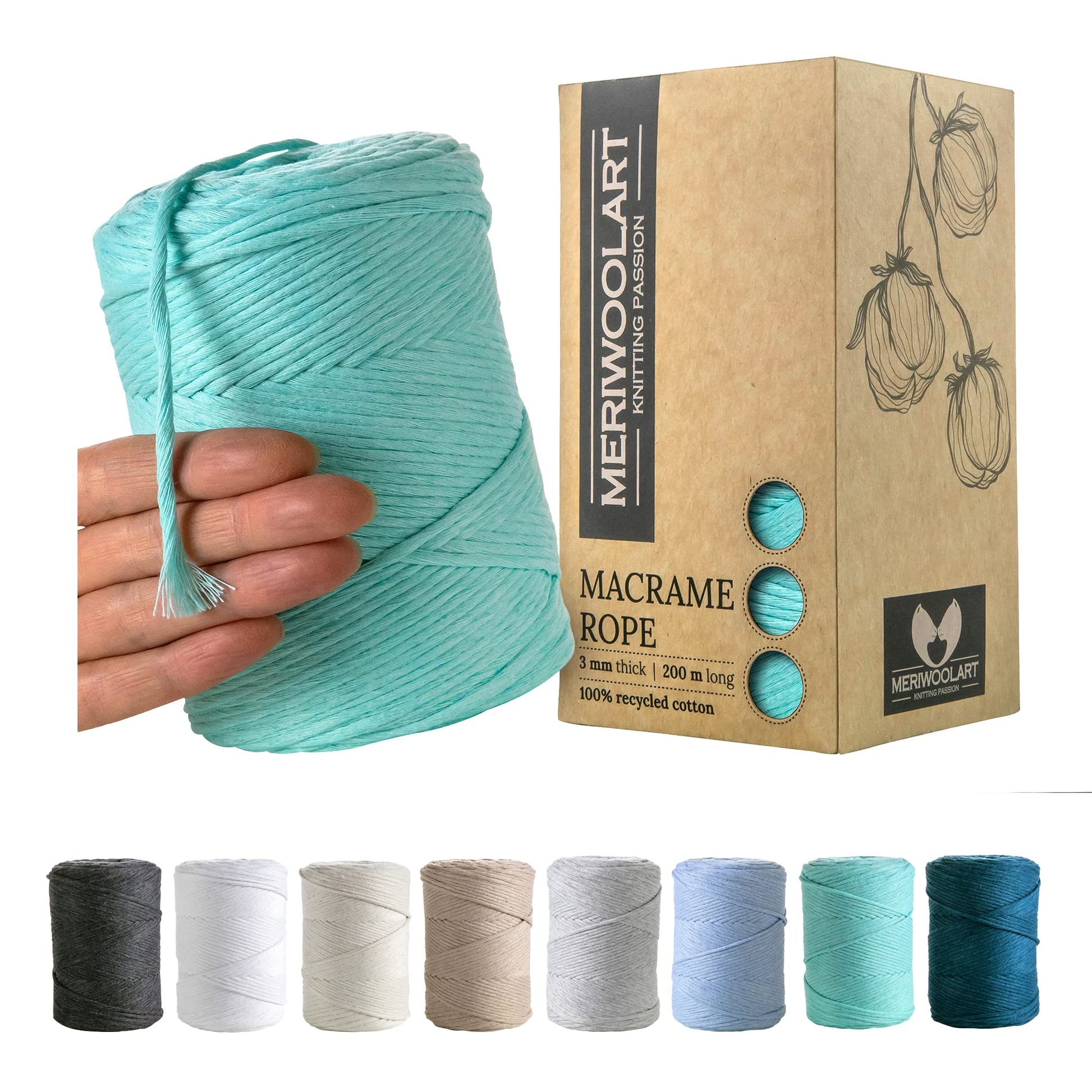 - SUPERWEICHES BAUMWOLLGARN. 100 % recycelte, Öko-Tex-zertifizierte Baumwolle. Sanft gedrehter Makrameefaden.