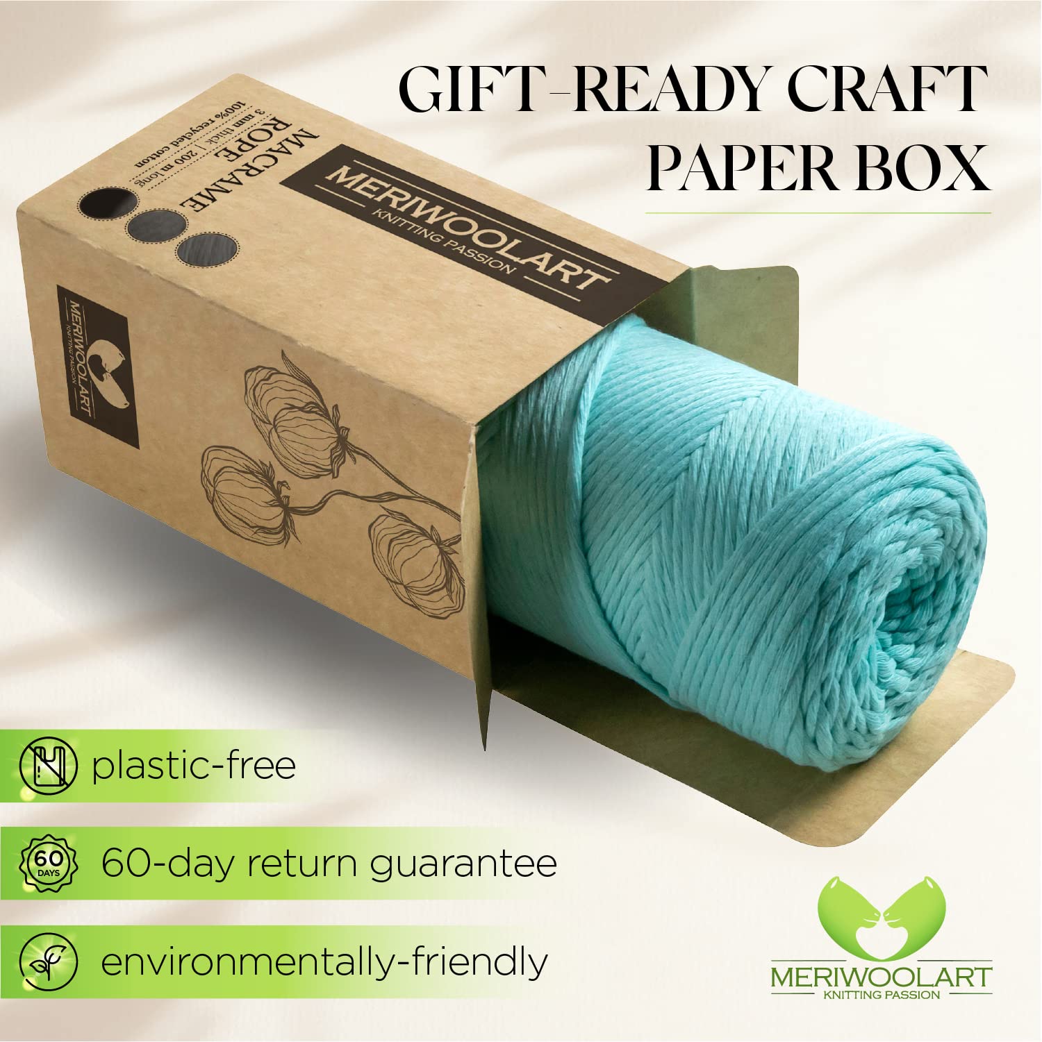 - Unser natürliches Baumwollgarn ist in einer Naturpapierschachtel verpackt und ein aufmerksames Geschenk für umweltbewusste Freunde und Verwandte.
