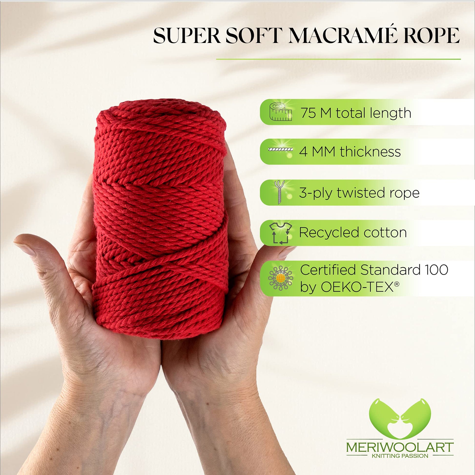 ROTES MAKRAMEE-SEIL 4 MM, 75 M