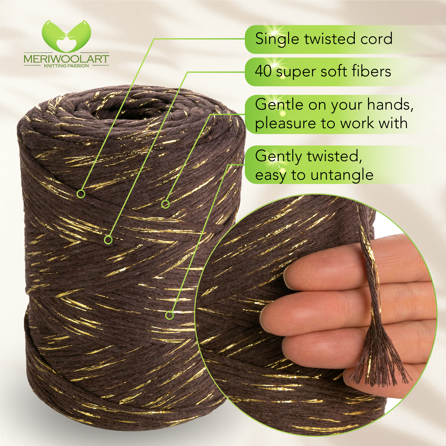 Macramé simple torsadé en lurex marron 3 mm 200 m