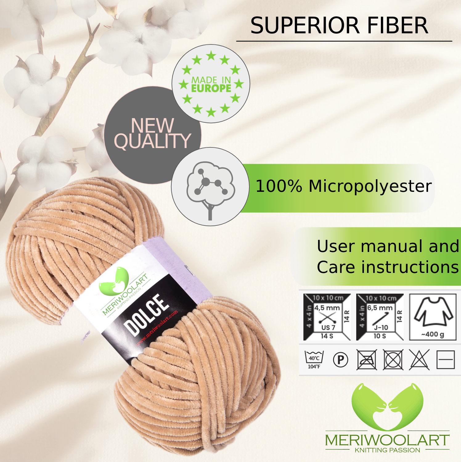 - Fils chenille 100 % polyester. Le fil velours épais offre un toucher velouté grâce à sa teneur en micropolyester.
