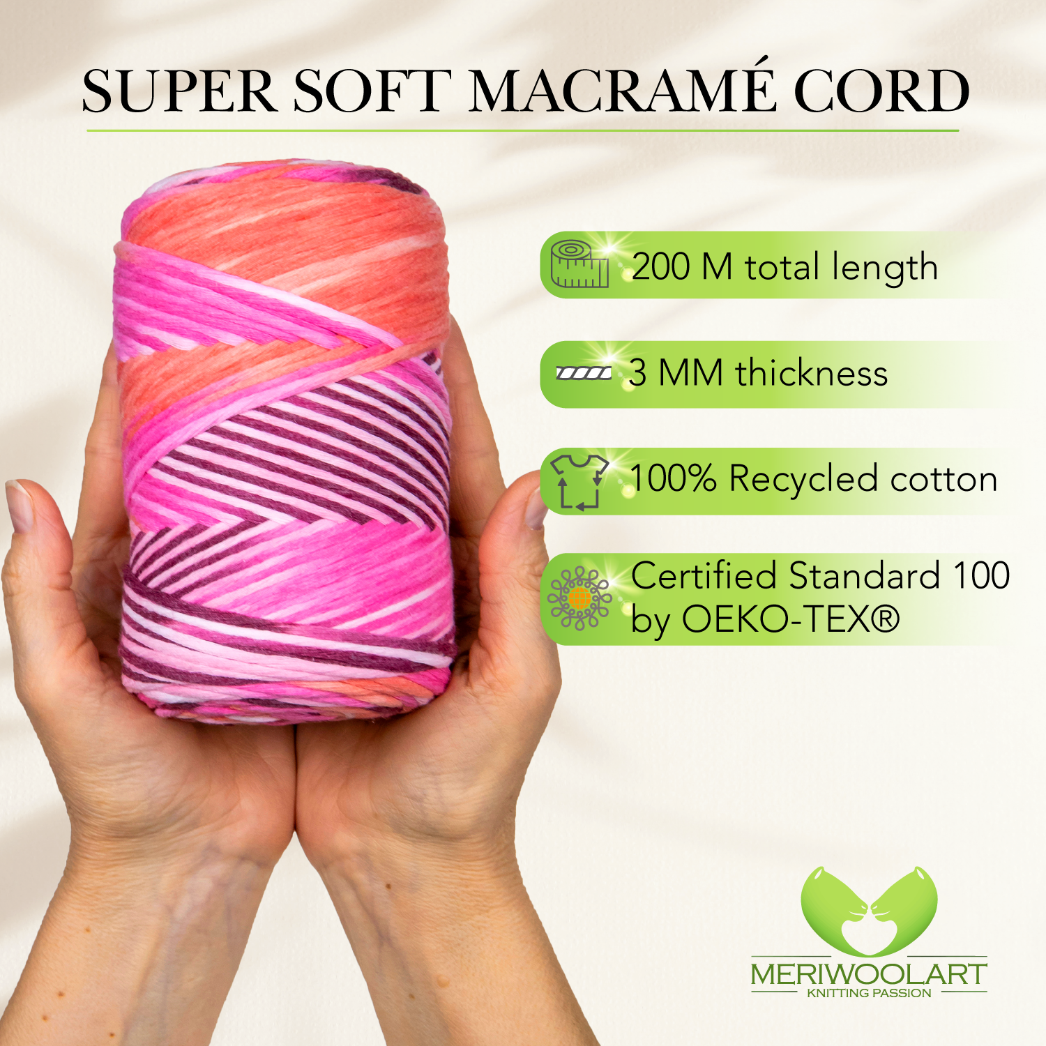 - Fil de coton ultra doux. 100 % coton recyclé certifié Oeko-Tex. Fil macramé délicatement torsadé.