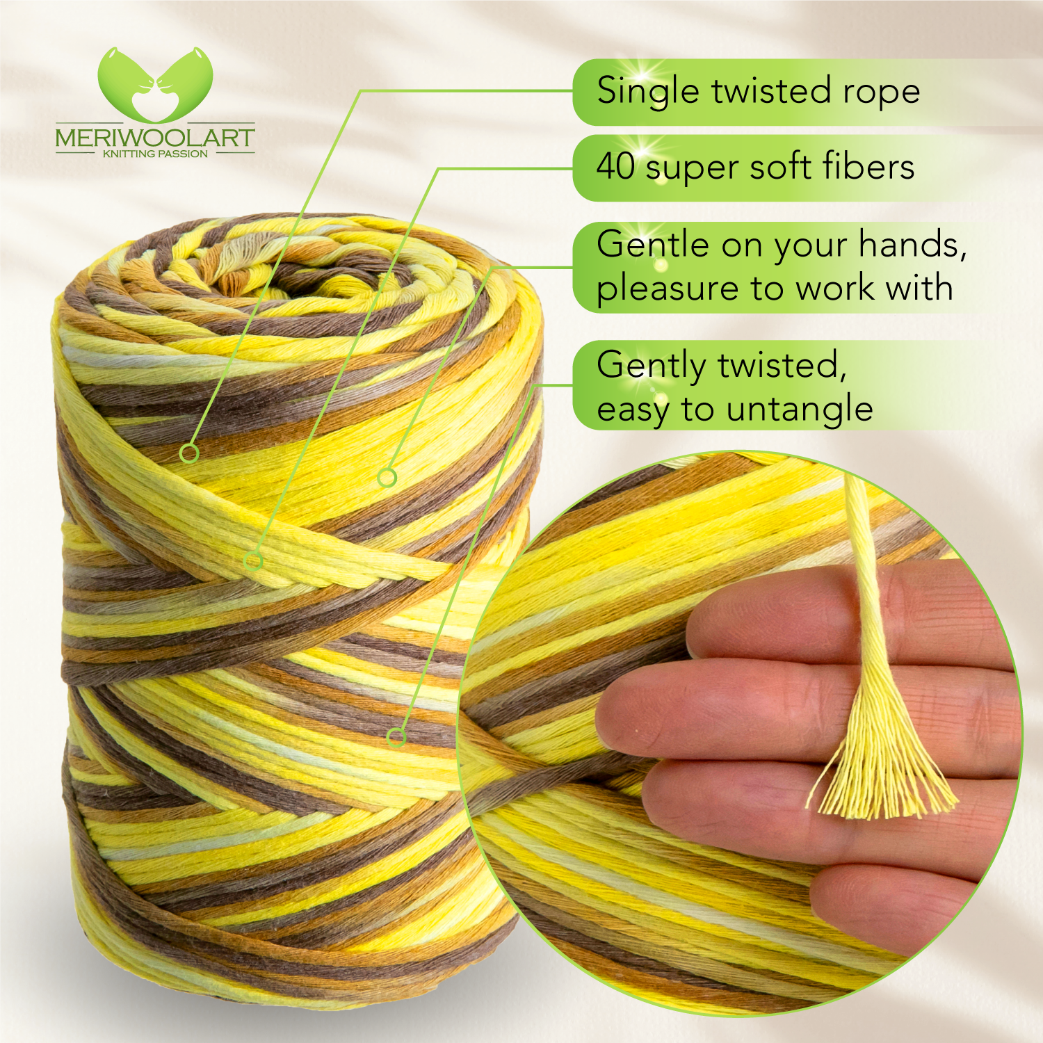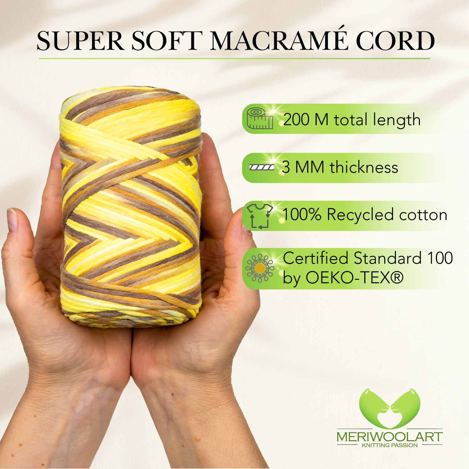 - Fil de coton ultra doux. 100 % coton recyclé certifié Oeko-Tex. Fil macramé délicatement torsadé.