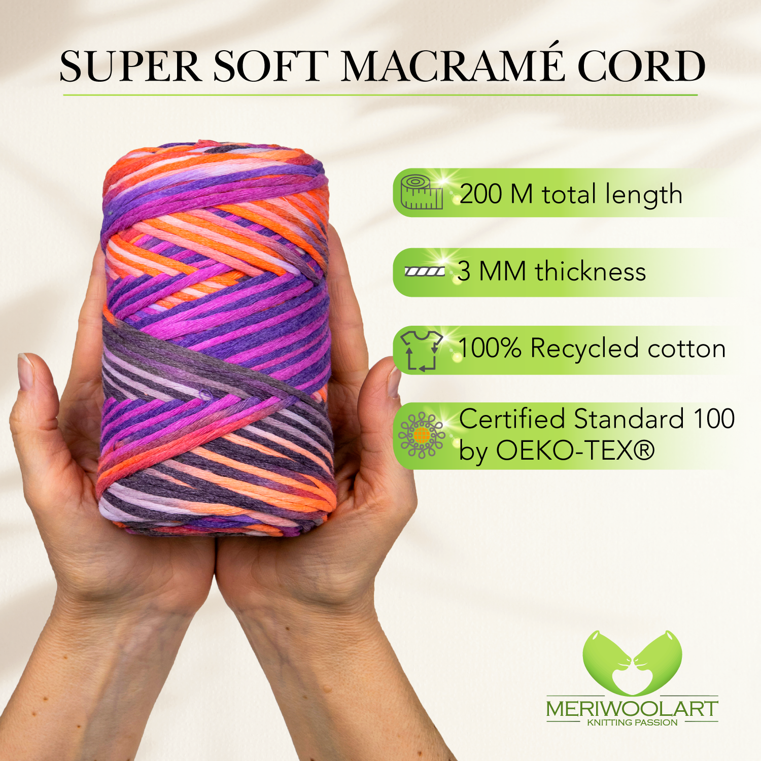 - Fil de coton ultra doux. 100 % coton recyclé certifié Oeko-Tex. Fil macramé délicatement torsadé.