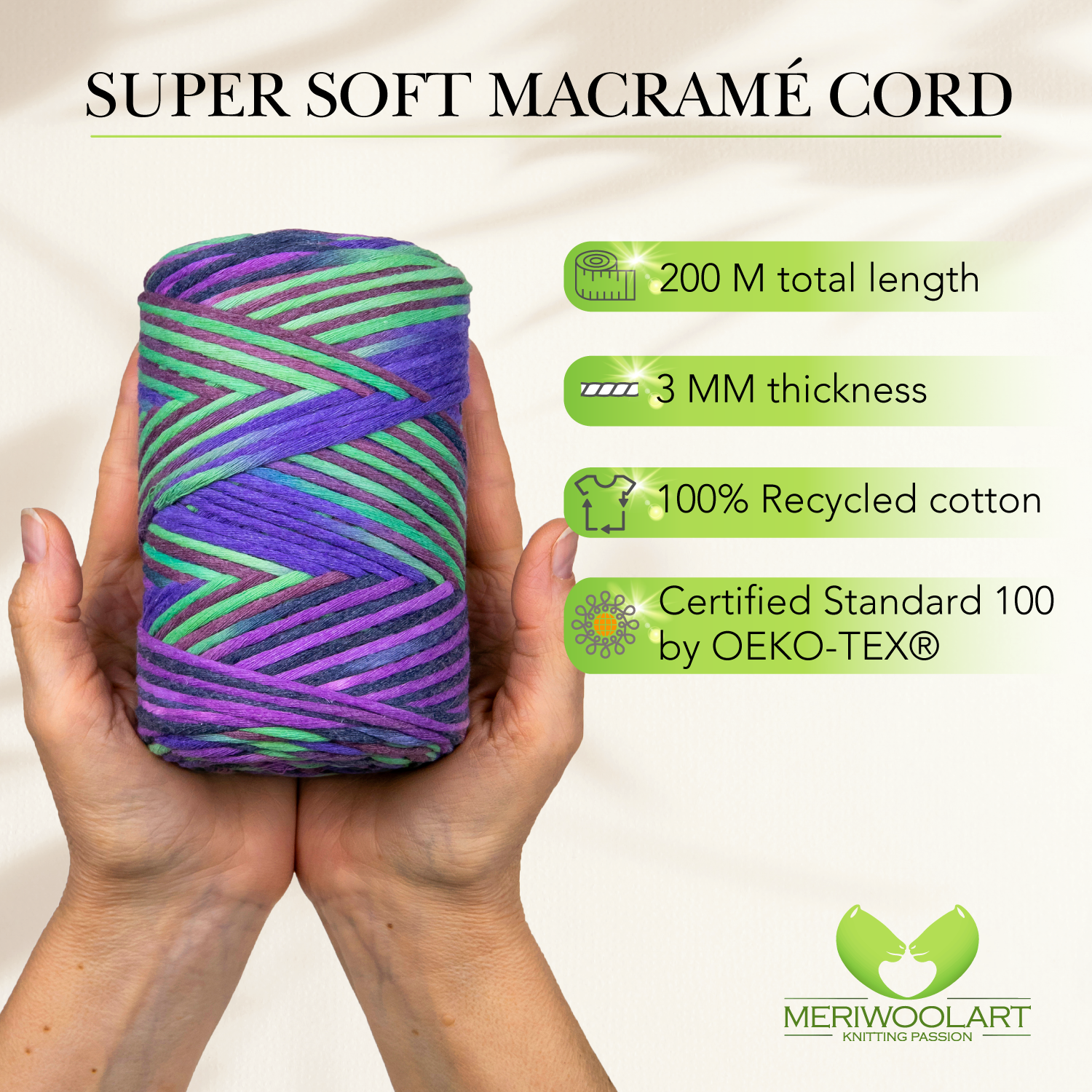 - Fil de coton ultra doux. 100 % coton recyclé certifié Oeko-Tex. Fil macramé délicatement torsadé.