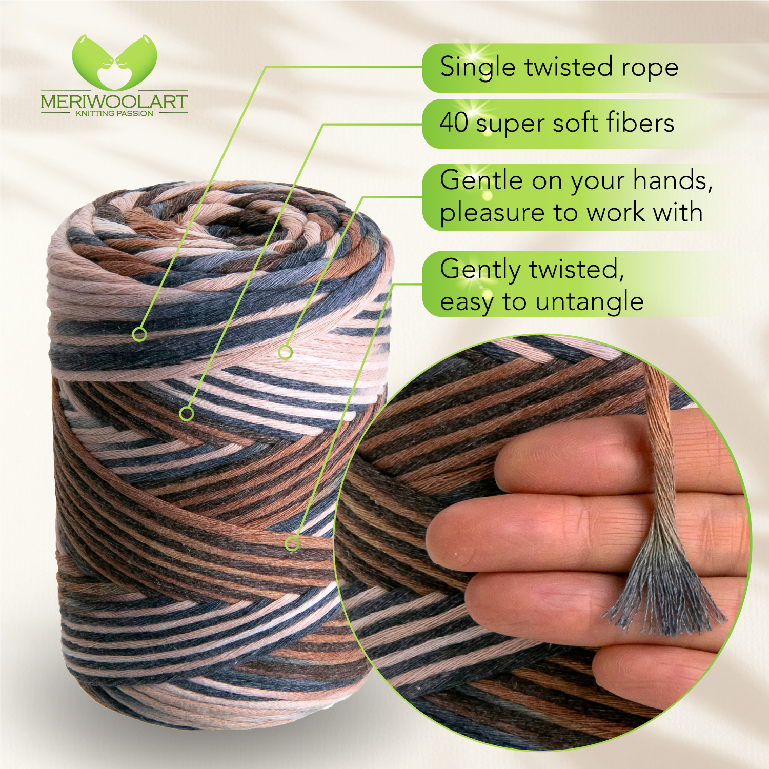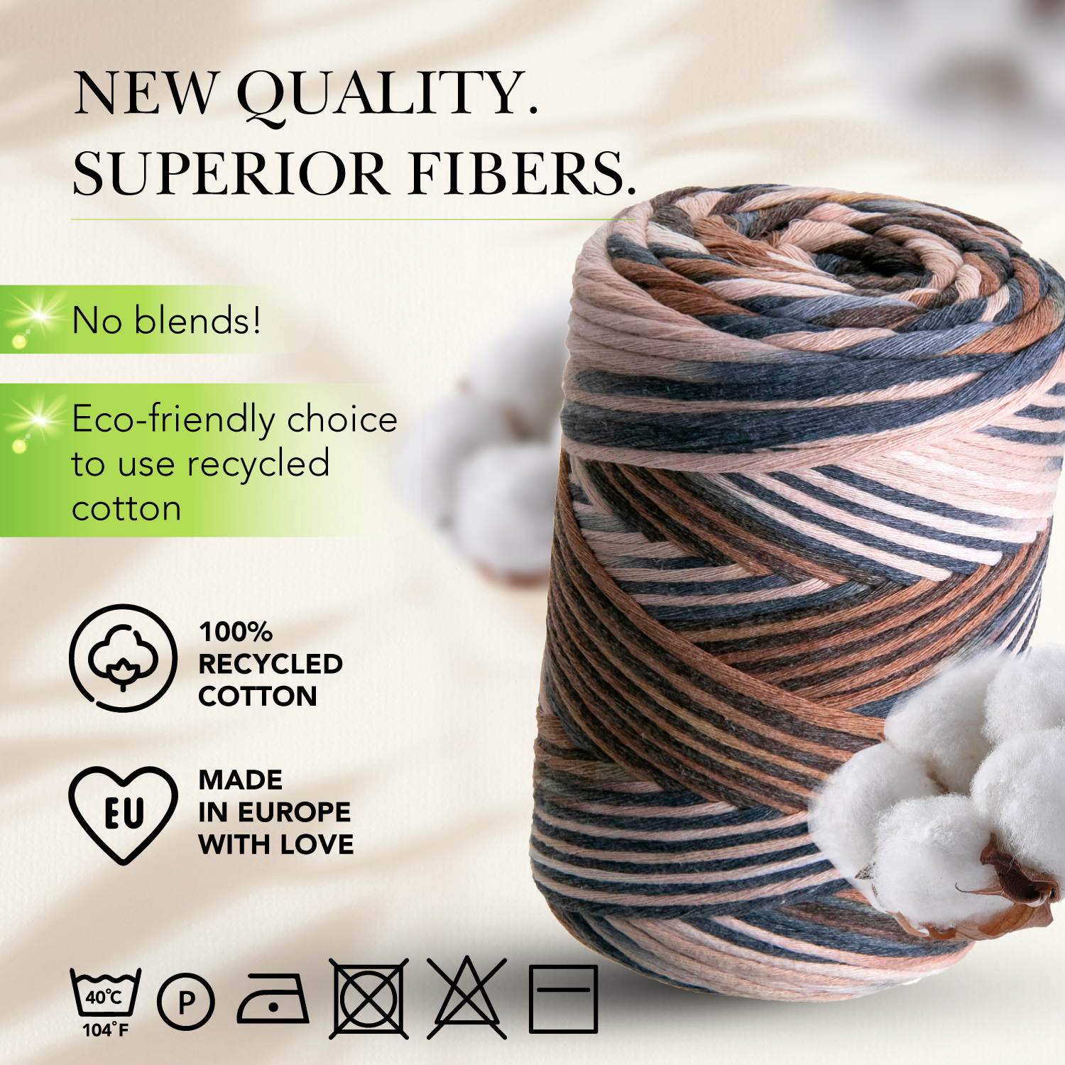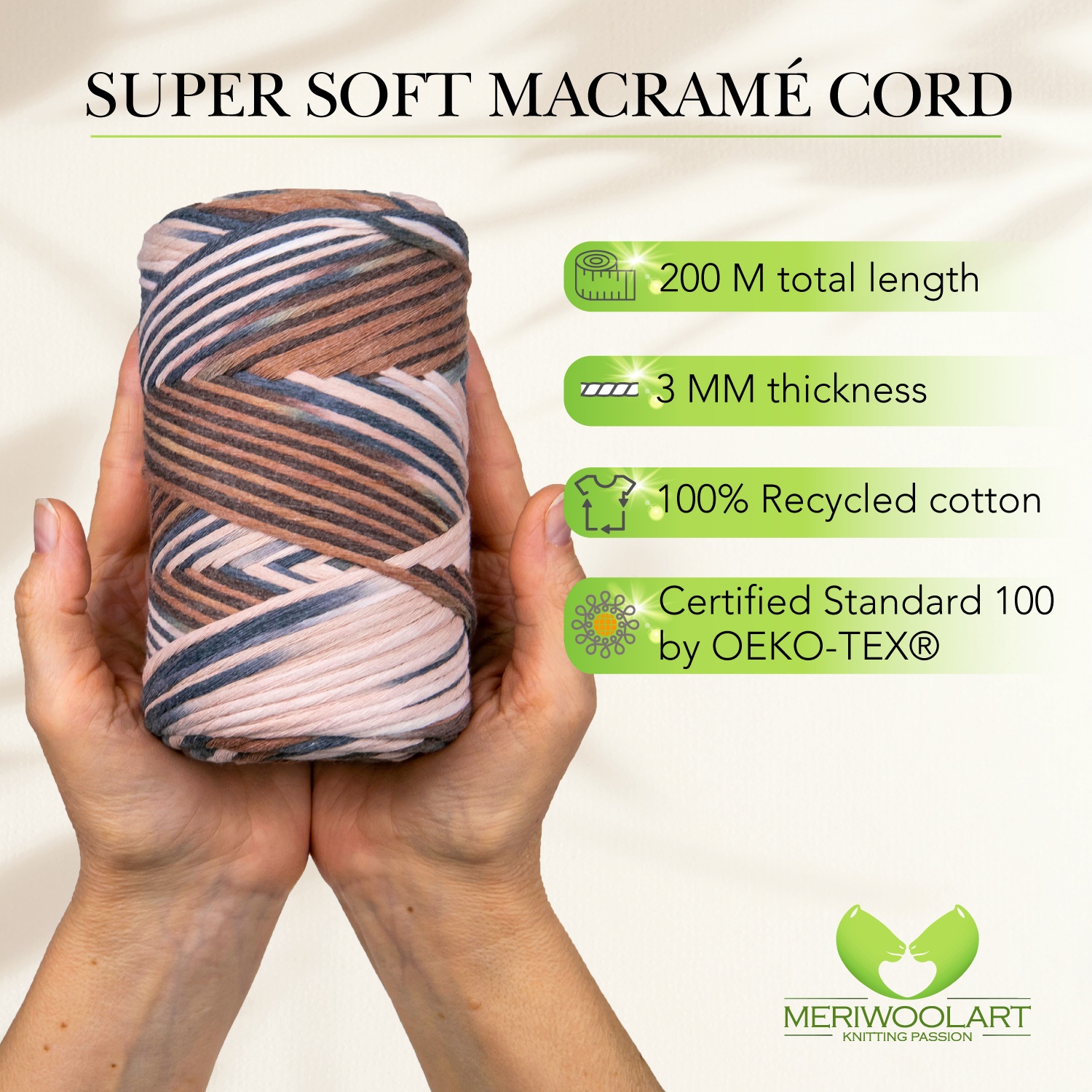 - Fil de coton ultra doux. 100 % coton recyclé certifié Oeko-Tex. Fil macramé délicatement torsadé.