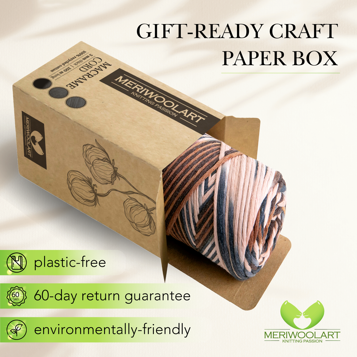 - Notre fil de coton naturel est emballé dans une boîte en papier naturel et constitue un cadeau attentionné pour les amis et les proches soucieux de l'environnement.