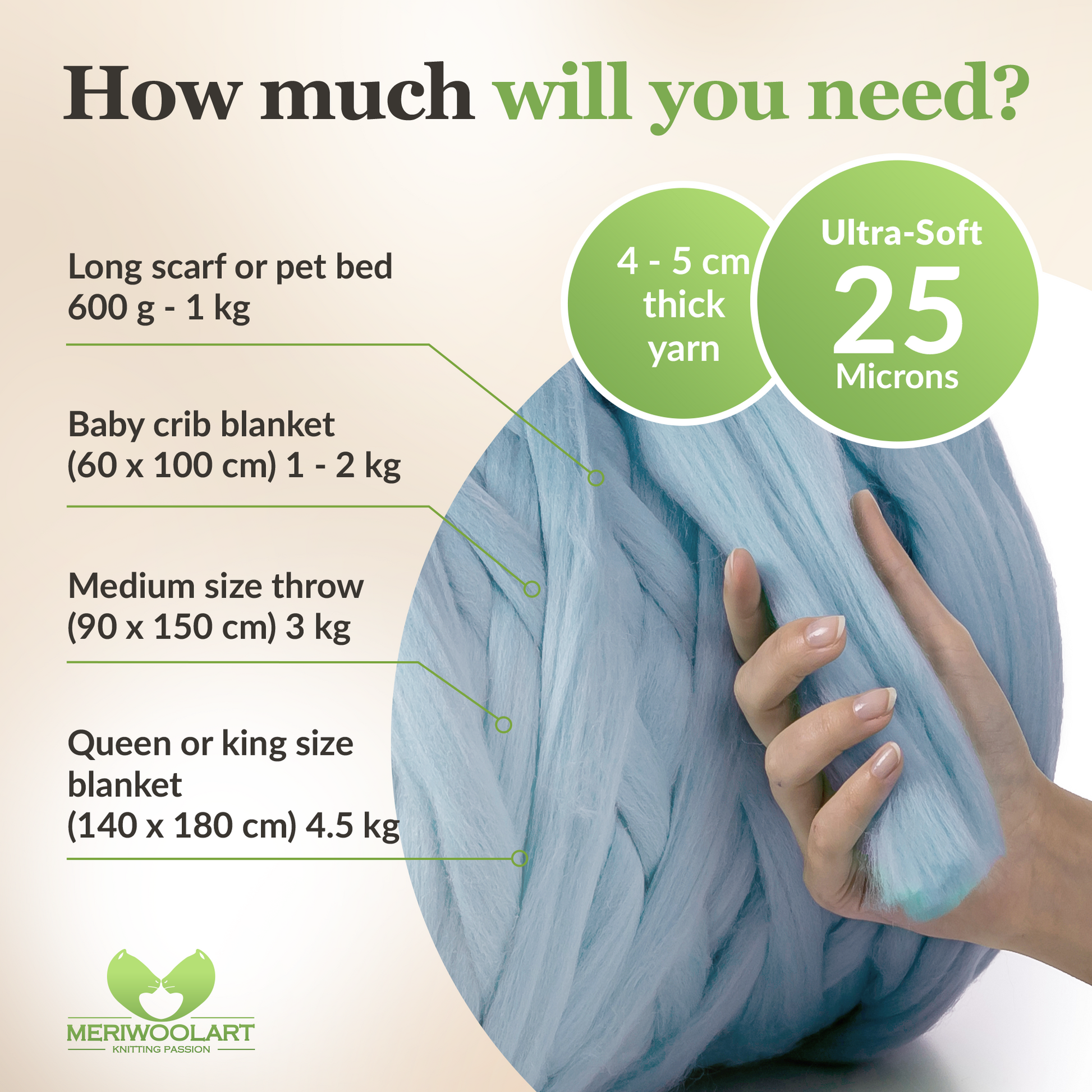 • Super chunky merino wool is the most luxurious giant yarn you can buy. If you want the softest 25 micron merino wool, this is the one.