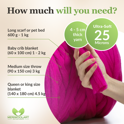 [{"id":273740824775,"handle":"best-selling-collection","title":"Best selling products","updated_at":"2025-12-12T14:06:40+02:00","body_html":null,"published_at":"2021-07-08T14:59:30+03:00","sort_order":"best-selling","template_suffix":null,"disjunctive":false,"rules":[{"column":"variant_price","relation":"greater_than","condition":"0"}],"published_scope":"web"},{"id":273741775047,"handle":"best-selling-products","title":"Best Selling Products","updated_at":"2025-12-12T14:06:40+02:00","body_html":null,"published_at":"2021-07-08T15:20:02+03:00","sort_order":"best-selling","template_suffix":null,"disjunctive":true,"rules":[{"column":"title","relation":"contains","condition":"Best Selling"},{"column":"title","relation":"not_contains","condition":"Best Selling"}],"published_scope":"web"},{"id":164478844976,"handle":"shop-xxl-giant-merino-wool-yarns","updated_at":"2025-12-12T14:06:40+02:00","published_at":"2020-05-22T17:01:36+03:00","sort_order":"created-desc","template_suffix":"","published_scope":"web","title":"Merino Wool Yarns","body_html":"\u003cp\u003e\u003cspan style=\"font-weight: 400;\"\u003eOur ‘Super Chunky Merino Wool Yarn’ is made of 100% pure fleece of the Merino sheep. The Merino sheep is known for growing the softest and finest wool of any sheep. It’s perfect for luxurious and cosy knitwear projects used close to the skin, bringing incredible softness and fantastic insulating qualities that help regulate body temperature, transport sweat and odours away.\u003c\/span\u003e\u003c\/p\u003e\n\u003c!-- split --\u003e\n\u003ch2\u003e\u003cspan style=\"font-weight: 400;\"\u003eWhy is it called super chunky?\u003c\/span\u003e\u003c\/h2\u003e\n\u003cp\u003e\u003cspan style=\"font-weight: 400;\"\u003eSuper thick, super soft and super stylish! Super chunky yarn is the thickest and heaviest weight of our chunky knit yarns and is typically used with 10mm - 25mm needles. You don’t even need needles, discover the easiest way to knit, with your hands. It’s also great with so many of your hand knitting and crochet designs and gives you a taste of ‘extreme knitting’.\u003c\/span\u003e\u003c\/p\u003e\n\u003ch2\u003e\u003cspan style=\"font-weight: 400;\"\u003eWhen do you use this type of wool\/yarn for knitting projects?\u003c\/span\u003e\u003c\/h2\u003e\n\u003cp\u003e\u003cspan style=\"font-weight: 400;\"\u003eIf you’re looking to create unique personal touches around your home, spend quality time with your family or lift your own wellbeing with calming moments of knitting meditation, super chunky yarn is perfect. Great for completing your projects super-fast. Develop fantastic cosy gifts for yourself or friends and family by hand, and discover the joy of all things arm knitting and macrame.\u003c\/span\u003e\u003c\/p\u003e\n\u003ch2\u003e\u003cspan style=\"font-weight: 400;\"\u003eWhat kind of things can you make using this yarn\/ wool? \u003c\/span\u003e\u003c\/h2\u003e\n\u003cp\u003e\u003cspan style=\"font-weight: 400;\"\u003eSuper chunky wool will let you create amazingly soft and cosy jumpers, hats, gloves cardigans or even coats.. and for homeware accessories, it’s great for luxurious squishy XXL blankets, rugs, pouffes, cat or dog beds, knit rugs and pillows. \u003c\/span\u003e\u003c\/p\u003e\n\u003cp\u003e\u003cbr\u003e\u003c\/p\u003e\n\u003cp\u003e\u003cspan style=\"font-weight: 400;\"\u003eOur ‘Super Chunky Merino Wool Yarn’ is also perfect for your felting projects. Because Merino\u003c\/span\u003e \u003cspan style=\"font-weight: 400;\"\u003ewool has a soft and very fine texture with a natural crimp it makes ideal wool for felting. Easily weave the yarn through your shape cutter designs to make amazing felt slippers, felt table decorations, felt Christmas decorations and much more.\u003c\/span\u003e\u003cbr\u003e\u003cbr\u003e\u003c\/p\u003e\n\u003ch2\u003e\u003cspan style=\"font-weight: 400;\"\u003eIs Merino wool soft? \u003c\/span\u003e\u003c\/h2\u003e\n\u003cp\u003e\u003cspan style=\"font-weight: 400;\"\u003eOur premium Merino wool has fibres that are finer and much more flexible than regular wool, giving its yarn an incredible softness. Its fluffy light touch texture is perfect for items that are used close to the skin as it doesn’t scratch or cause irritation. With fantastic insulating qualities and each fibre helps regulate body temperature making it easier to care for with a longer life and can even be machine washable.\u003c\/span\u003e\u003c\/p\u003e\n\u003ch2\u003e\u003cspan style=\"font-weight: 400;\"\u003eIs the super chunky yarn 100% Merino wool? What about the quality?\u003c\/span\u003e\u003c\/h2\u003e\n\u003cp\u003e\u003cspan style=\"font-weight: 400;\"\u003eOur Merino wool is of exceptionally high quality, it is 100% pure Merino wool and processed to the highest standards. The modern-day spinning technology and fibre treatments make an outstanding fabric, far superior to aran, cotton or synthetic materials. \u003c\/span\u003e\u003c\/p\u003e\n\u003ch2\u003e\u003cspan style=\"font-weight: 400;\"\u003eWhat is the size of super chunky Merino wool?\u003c\/span\u003e\u003c\/h2\u003e\n\u003cp\u003e\u003cspan style=\"font-weight: 400;\"\u003eSuper chunky Merino wool is our thickest size wool available. The yarn material thickness is approx. 4-5cm when unwound from the ball. 4.5 kg will equal around 200 meters of yarn with 25-micron high-quality Merino wool, made from the fleece of the Merino sheep. \u003c\/span\u003e\u003c\/p\u003e\n\u003cp\u003e\u003cspan style=\"font-weight: 400;\"\u003eWhat are the sizes of super chunky Merino wool that are available at MeriWoolArt? \u003c\/span\u003e\u003c\/p\u003e\n\u003cp\u003e\u003cspan style=\"font-weight: 400;\"\u003eIf you’re ready to start your arm knitting adventure, look no further. We have a super soft 25 micron with a 4-5cm thickness. Skein weight is 4.5KG, giving you approximately 200 meters of yarn and a spool of 40x30x30cm. \u003c\/span\u003e\u003c\/p\u003e\n\u003cp\u003e\u003cbr\u003e\u003c\/p\u003e\n
