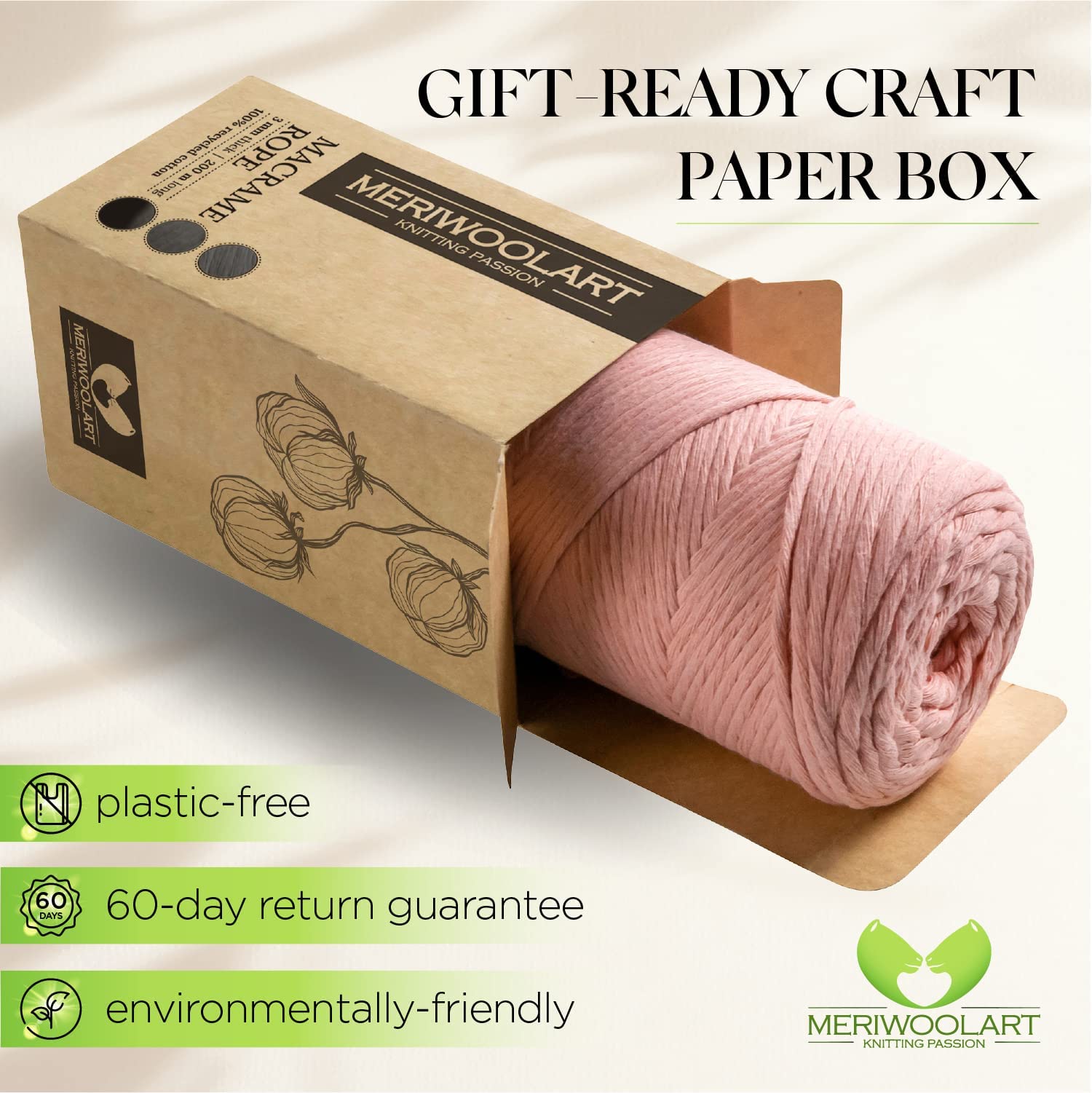 - Our natural cotton yarn is packed in a natural paper box and is a thoughtful gift for environmentally conscious friends and relatives.