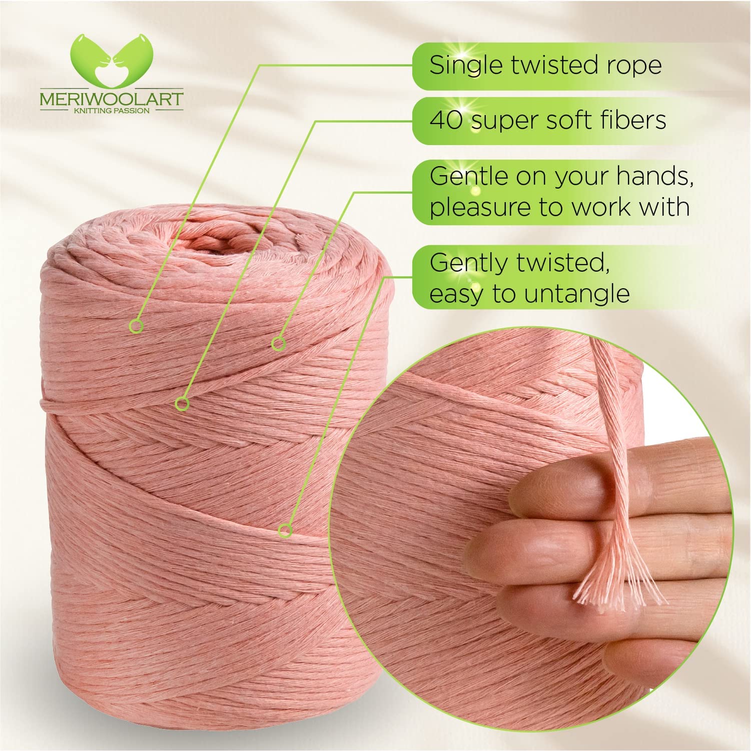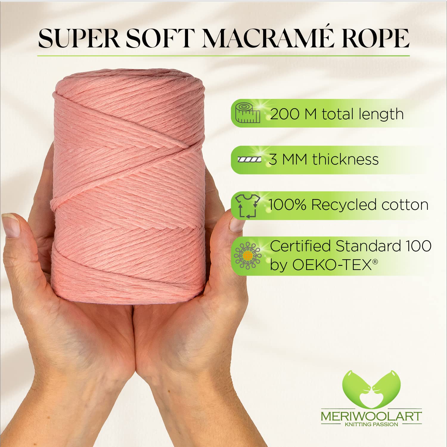- SUPER SOFT COTTON YARN. 100% recycled Oeko-Tex certified cotton. Gently twisted macrame thread.